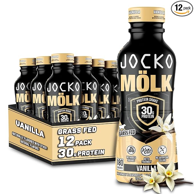 Jocko Mölk 30g Grass Fed Protein Shakes – No Added Sugar Protein Drinks KETO Friendly - Ready to Drink 12 FL Oz (Pack of 12) Vanilla