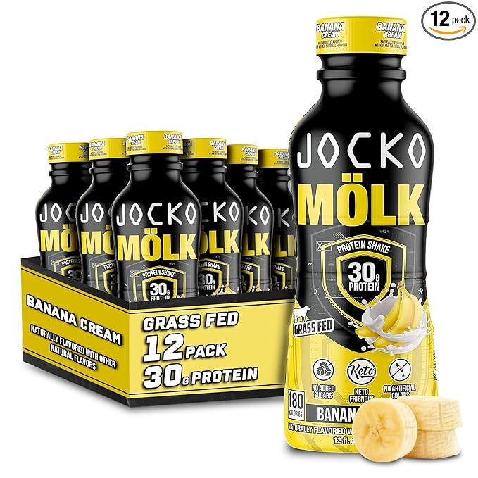 Jocko Mölk 30g Grass Fed Protein Shakes – No Added Sugar Protein Drinks KETO Friendly - Ready to Drink 12 FL Oz (Pack of 12) Banana Cream