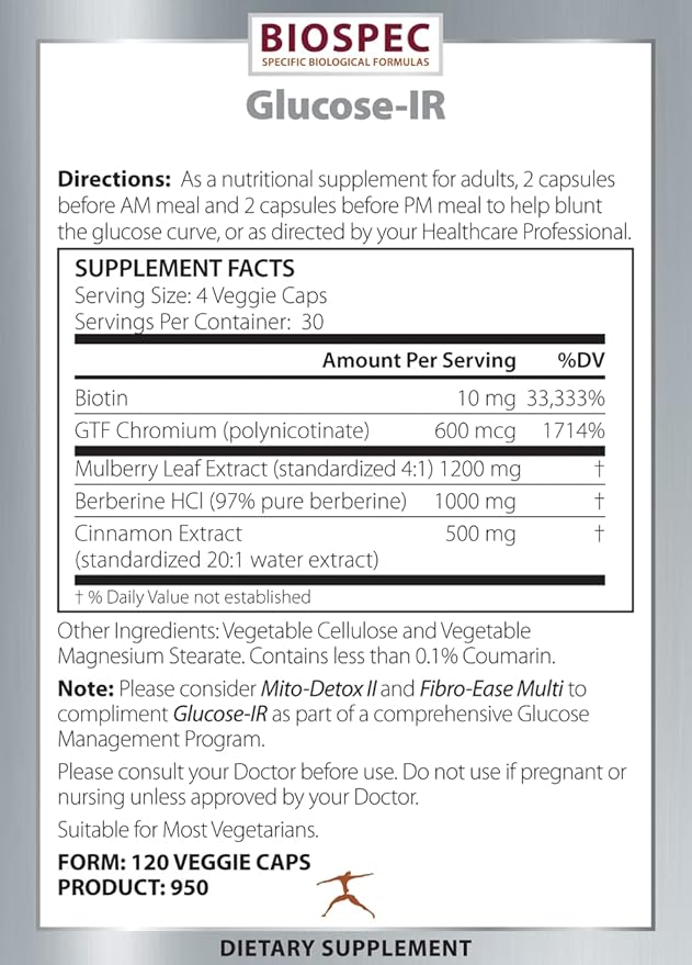 Glucose-IR - Cinnamon Extract, Chromium, Berberine, and Biotin (120 Capsules)