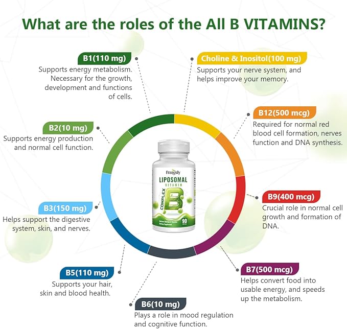 - Advanced Liposomal Form-Maximize Absorption : Liposomes, an excellent transport vehicle with a double layer of phospholipid membranes, the same structure as human cell membranes. Liposomes carry the active vitamin B, and delivered deep inside your body, and also prevent the vitamin B from being destroyed in the digestive system, so the liposomal technology helps your body more effectively absorb the vitamin B complex, allowing a higher absorption rate than regular VBs.