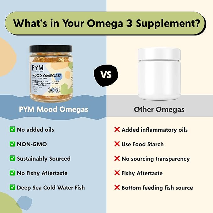 - Prepare Your Mind: PYM Mood Omegas are formulated by neuroscientists and nutritional psychiatrists to support feelings of brain fog, nerves and overall mood.