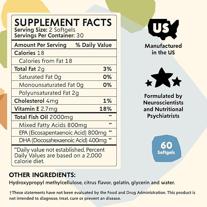 - Mindful Blend Of Ingredients: These non-GMO capsules are made with DHA, to support feelings of brain fog, as well as EPA to support lower inflammation.