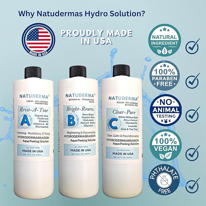 - MADE IN USA. All Natuderma’s Hydrodermabrasion Solution are proudly made in the United State of America, formulated, and tested by facial specialists. Made with Premium and Natural Ingredients.