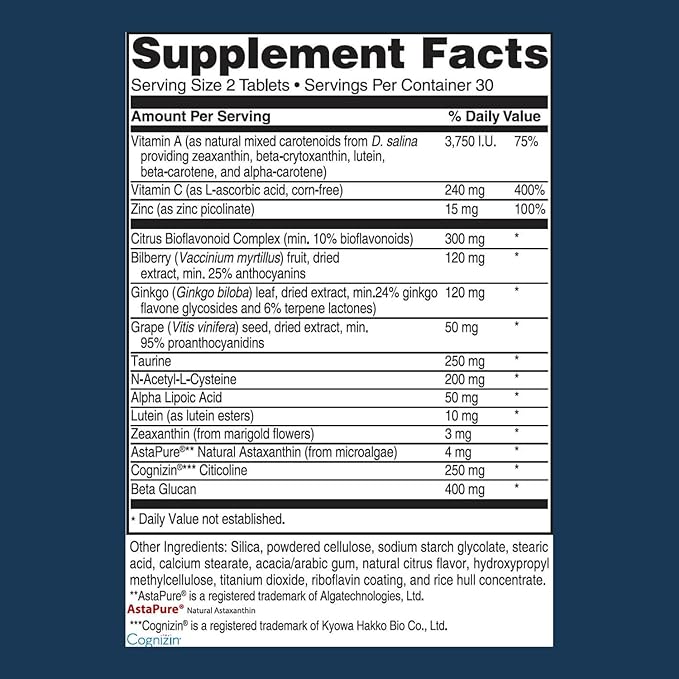 - ESSENTIAL NUTRIENTS: This supplement will help you support the health of your eye with Astaxanthin (cross blood-retina barrier), Bilberry (night vision), Lutein (carotenoid for eye health), Citicoline (neuroprotective support), Beta Glucan (promote eye health and function), Zeaxanthin (carotenoid that supports your eyes), Gingko Biloba (blood flow), and L-Taurine (support the retinas).