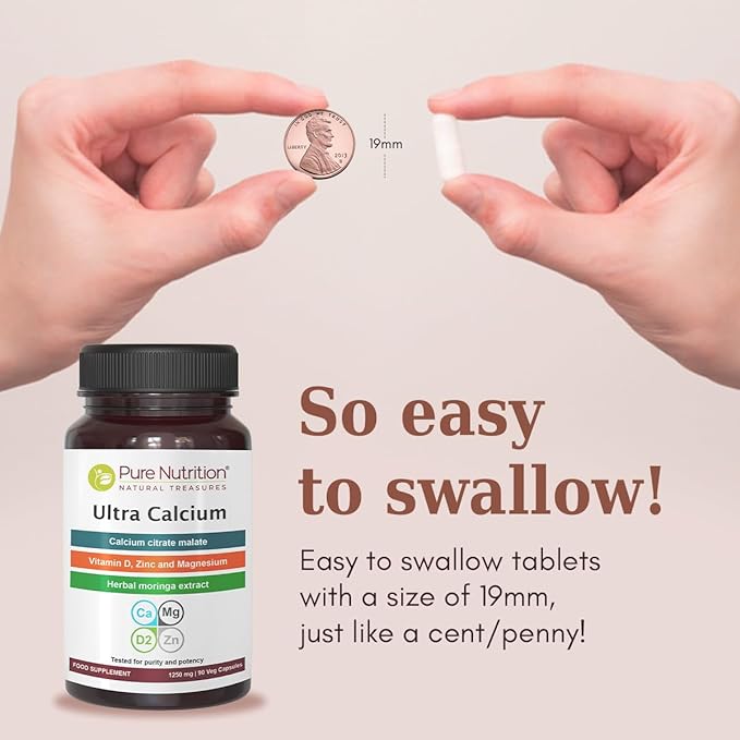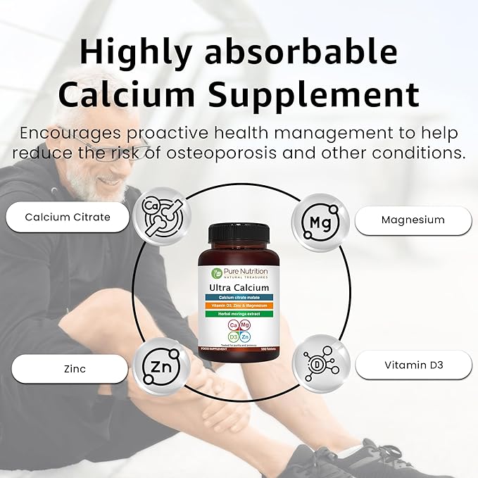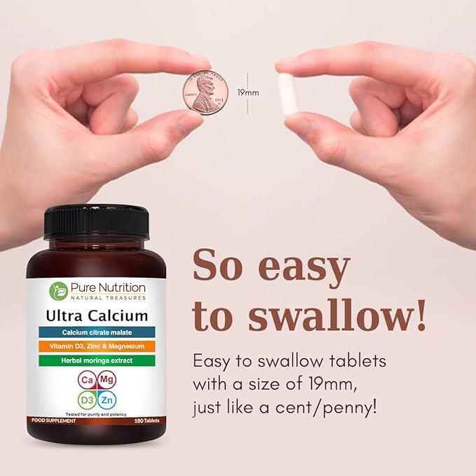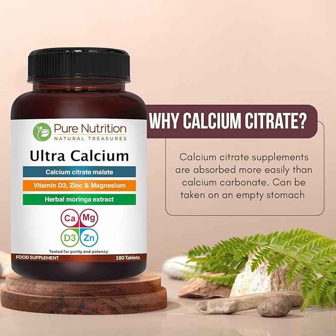 Pure Nutrition Ultra Calcium Citrate 1000mg Highly absorbable Calcium Supplement with Calcium Citrate Malate, Vitamin D, Zinc and Magnesium - 1 Tablet Daily (180 Veg Tabs) Non-GMO | Gluten-Free
