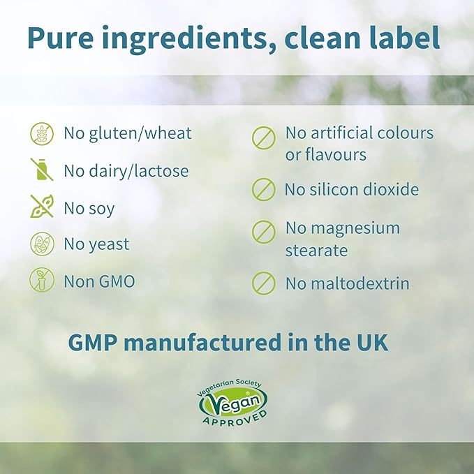 - GMP MANUFACTURED IN THE UK- formulated by nutrition scientists in Cambridge. Subtle & natural orange flavor; vegan; MTHFR-friendly. No sugars, aspartame, artificial colors or flavors