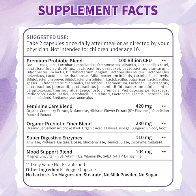 - GUT HEALTH SUPPLEMENTS FOR WOMEN - Probiotics for digestive health delivers 100 Billion CFU 32 strains probiotic, 230 mg premium prebiotics fiber ---It serves as prebiotics (food) to nourish supplemented probiotics and promote the growth of beneficial probiotics in the intestines. Plus broad-spectrum digestive enzymes Restore Gut Balance, Facilitate Better Nutrient Absorption, Relieve Gas and Bloating, Constipation and Diarrhea, and Replenish Gut Microbiota.