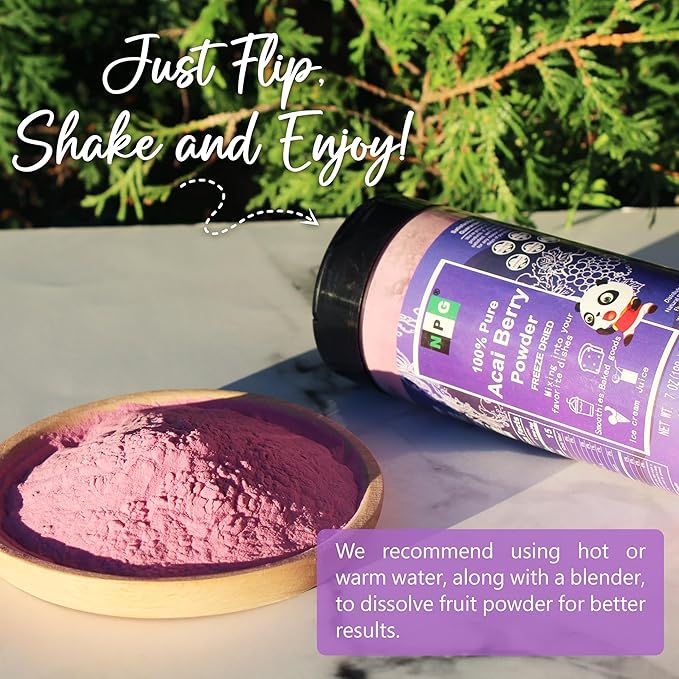 NPG Freeze-Dried Acai Berry Powder 7 Oz, Seedless Superfood with a Fine Powder Texture for Smoothies, Drinks, and Natural Food Coloring, Non-GMO, No Added Sugar, No Preservativesthi