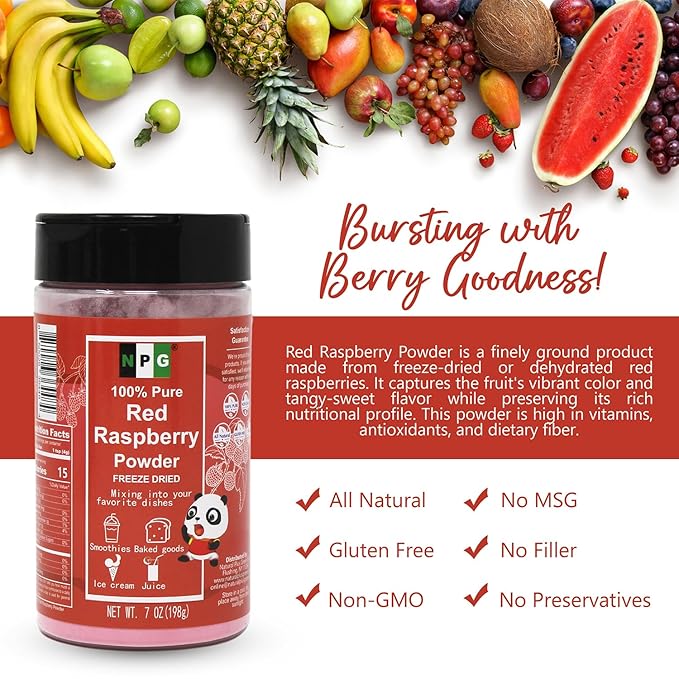 - Natural Flavor & Color: Red raspberry powder provides a vibrant, fruity taste and a beautiful pink hue, enhancing the visual appeal and flavor of your recipes.