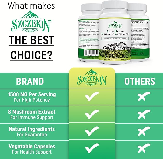 - 8-MUSHROOM MYCELIA EXTRACTS: Our Active Hexose Correlated Compound Supplement contains 8 highly potent organic mushroom extracts, enhancing the production of NK cells, T-cells, and macrophages. Including Reishi Mushroom, Chaga Mushroom, Turkey Tail Mushroom, Agaricus Blazei Mushroom, Lion’s Mane Extract Mushroom, Shiitake Mushroom, Cordyceps Sinensis, and Black Fungus. 1500 mg Active Hexose Correlated Compound Supplement Help is beneficial to bodies with well-researched natural supplements