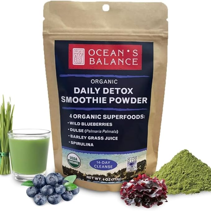 Ocean's Balance Daily Smoothie Powder – Organic Blend with Blueberry, Spirulina, Dulse Seaweed & Barley Grass – Nutrient-Rich Superfood Smoothie Mix (4 oz - 1 Pack)