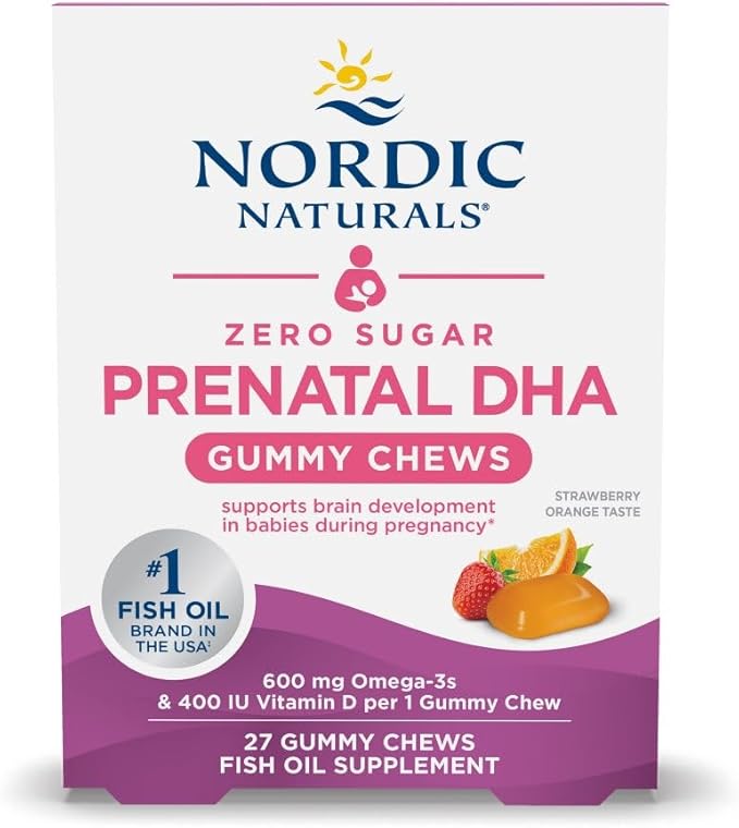 Nordic Naturals Zero Sugar DHA Prenatal Vitamin Gummies, Strawberry Orange Flavor - 27 Gummies - Supplements for Pregnancy - 600 mg Omega-3 Fish Oil and 400 IU Vitamin D3-27 Servings