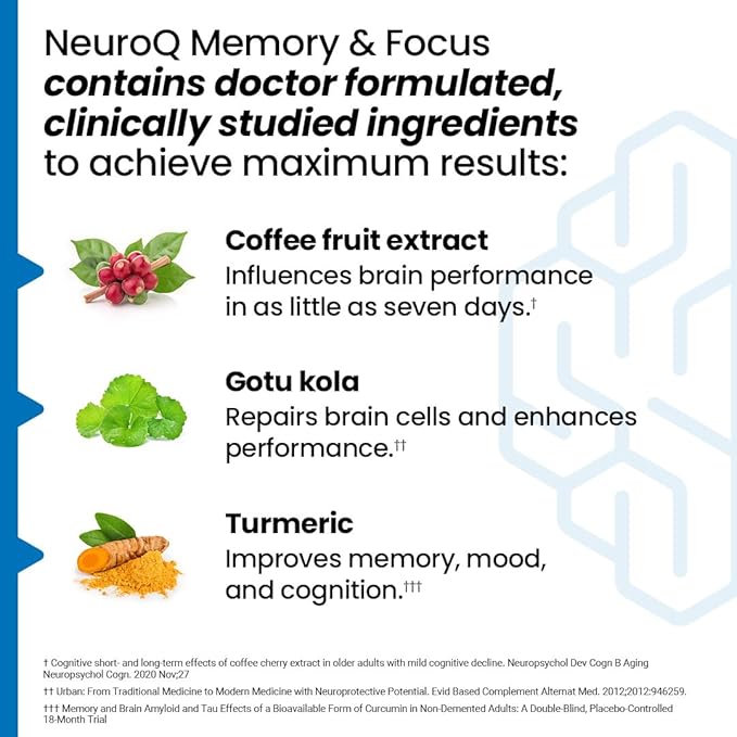 NeuroQ Memory & Focus - Boosts Cognitive Performance & Brain Function - Neuroprotective Formula by Dr. Dale Bredesen - Gotu Kola Ginkgo Phosphatidylserine & Propolis - 60 Capsules (Pack of 3)