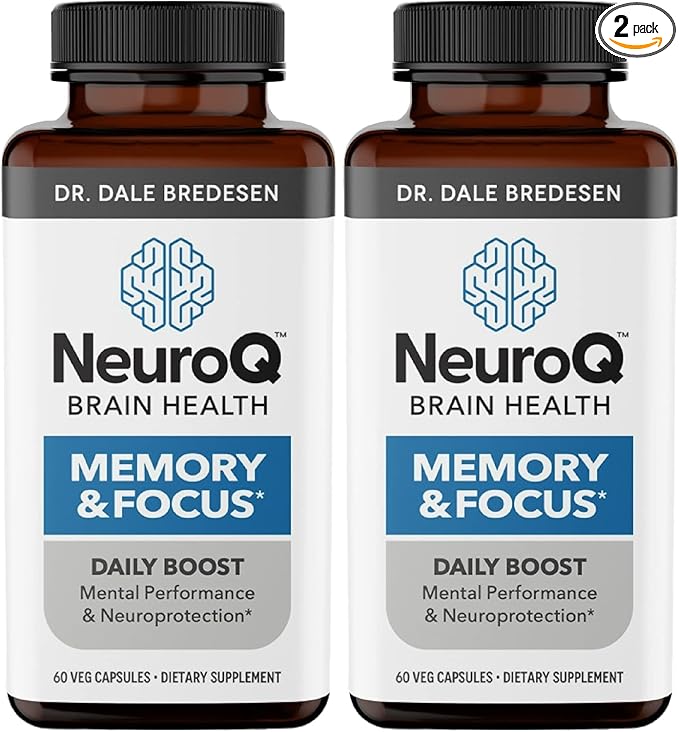NeuroQ Memory & Focus - Boosts Cognitive Performance & Brain Function - Neuroprotective Formula by Dr. Dale Bredesen - Gotu Kola Ginkgo Phosphatidylserine & Propolis - 60 Capsules (Pack of 2)
