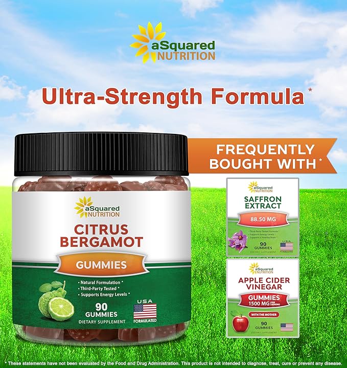 aSquared Nutrition Citrus Bergamot Gummies - Citrus Bergamot Extract Supplement 500mg Per Serving - Pure Gummy Alternative to Capsules & Pills