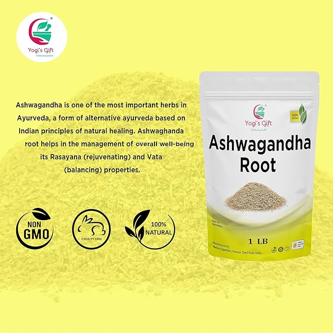Ashwagandha Root 1lb | Dried Ashwagandha Herb | 100% Naturally Dried | Withania Somnifera | Best Particle Size for Making Tea | by Yogi's Gift®