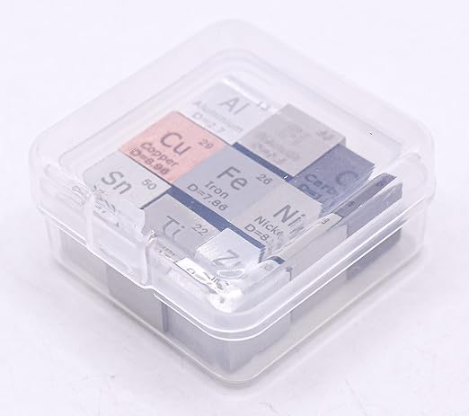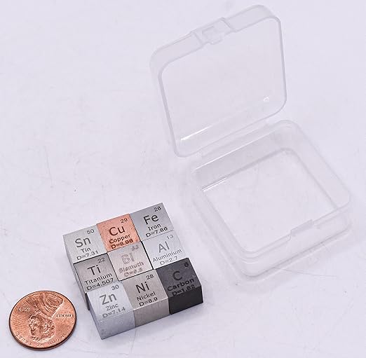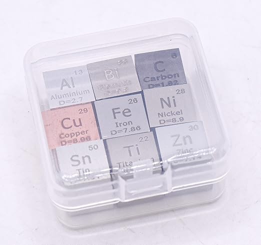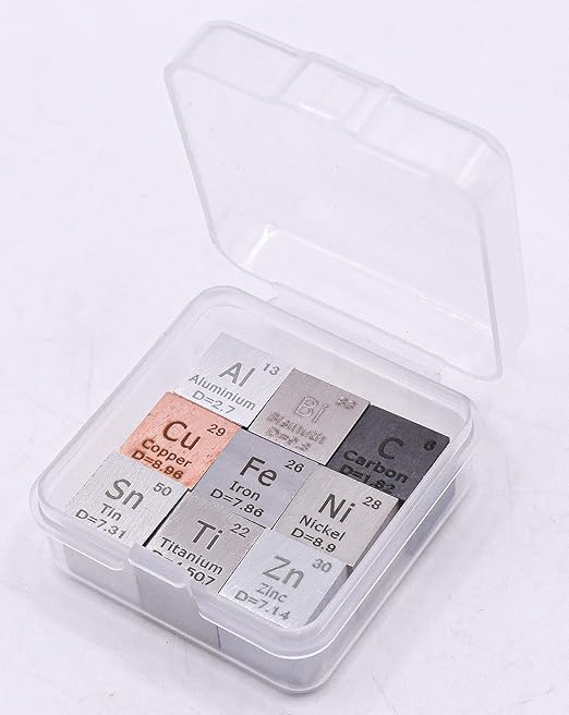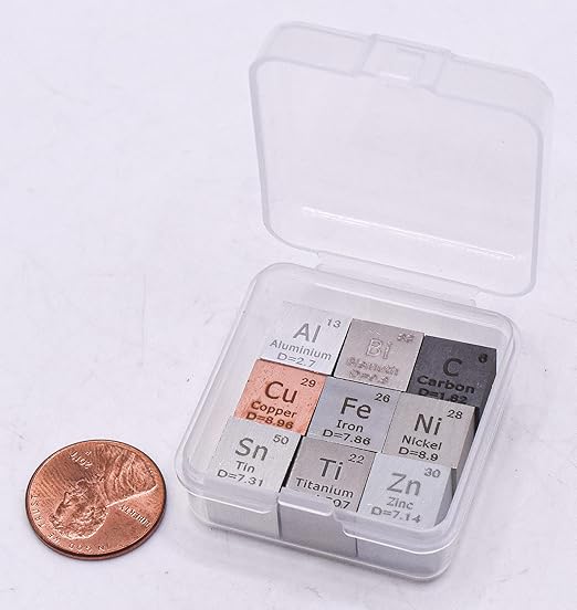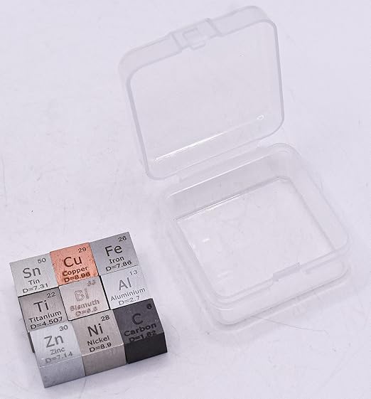 0.39" 10mm 9 Pack Element Cube Set Engraved Density Up to 99.99% Pure Metal Cubes Periodic Table Science Education Collection - Aluminium Bismuth Carbon Copper Iron Nickel Zinc Titanium Tin