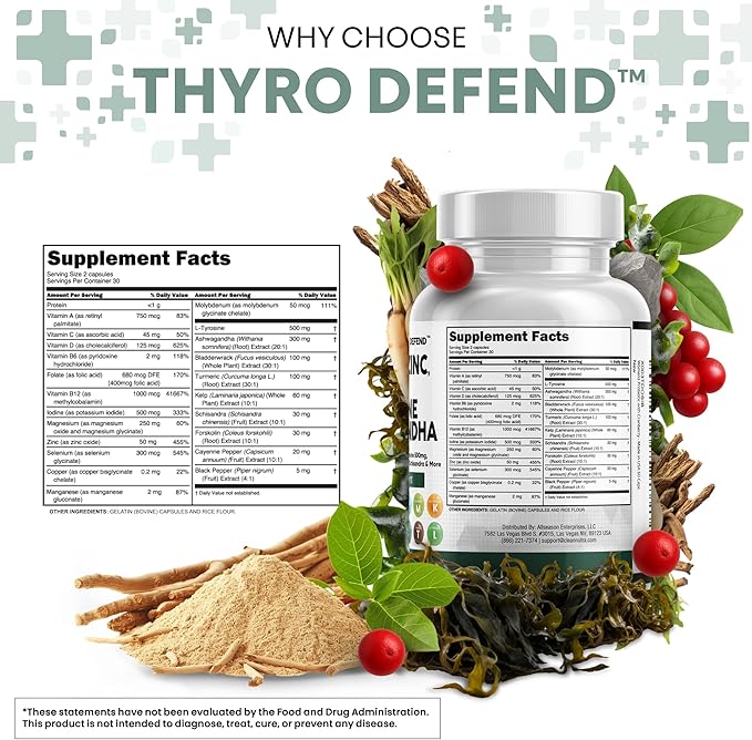- Introducing the ThyroDefend Thyroid Supplements Blend - In addition to thyroid support for women and zinc supplements for men, our formula contains bladderwrack, turmeric, kelp extract, schisandra extract, forskolin, cayenne pepper, vitamin b complex, and magnesium. This is a powerful alternative to iodine drops, iodine tablets, nascent iodine, l tyrosine 1000mg capsules, and selenium 200mcg capsules. Not your typical mood support supplement, potassium iodide tablets.