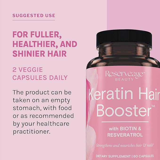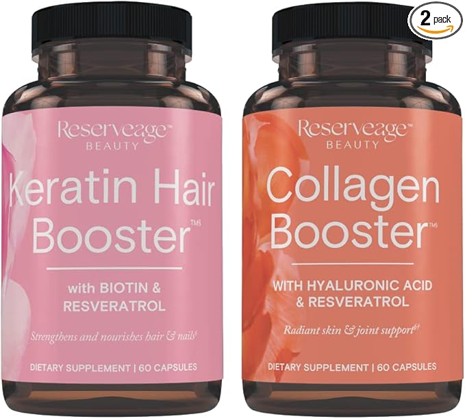 Reserveage Ultra Collagen Booster & Keratin Hair Booster - Features Dermaval, Biotin & Resveratrol - Support Hair & Skin - 60 Ultra Collagen Capsules, 60 Keratin Capsules