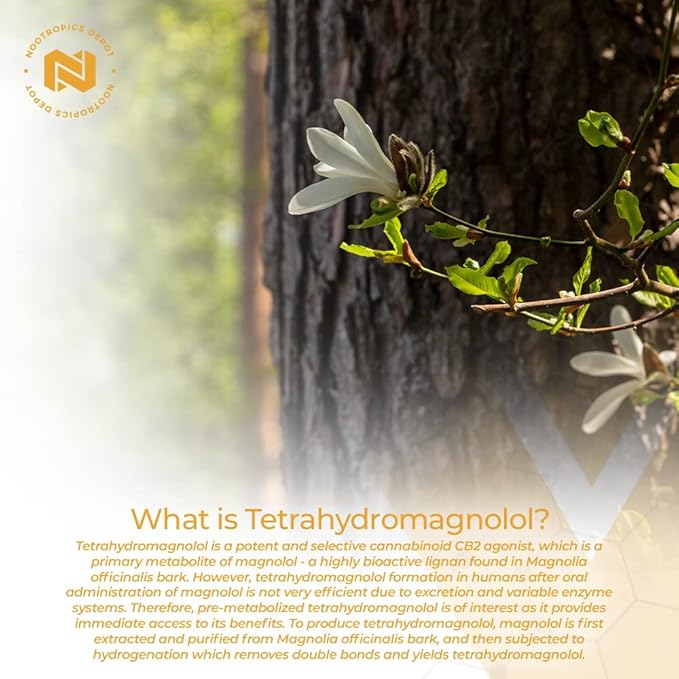 - Tetrahydromagnolol is one of the primary metabolites of magnolol, which is a highly bioactive lignan found in the bark of Magnolia officinalis. When magnolol is taken orally, it becomes metabolized by various enzyme systems, which then yields tetrahydromagnolol as one of the primary metabolites. Tetrahydromagnolol is even more bioactive, and most interestingly becomes a much more potent and selective cannabinoid CB2 agonist!