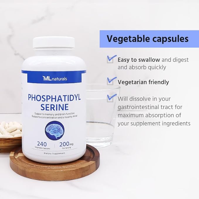 ML Naturals Phosphatidyl Serine 200 mg (Standard) 240 Vegetable Capsules. Supports Memory & Brain Function, Non-GMO, NSF-Certified & cGMP-Compliant