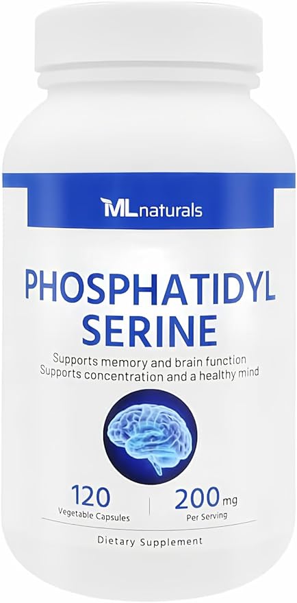 ML Naturals Phosphatidyl Serine 200 mg (Standard) 120 Vegetable Capsules. Supports Memory & Brain Function, Non-GMO, NSF-Certified & cGMP-Compliant