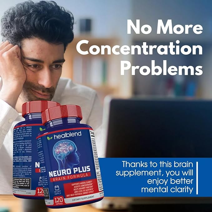Neuro Plus Brain & Focus Formula - Brain Booster Supplement, Supports Mental Clarity & Focus - Enhances Concentration & Mental Energy – 120 Capsules (3 Pack)
