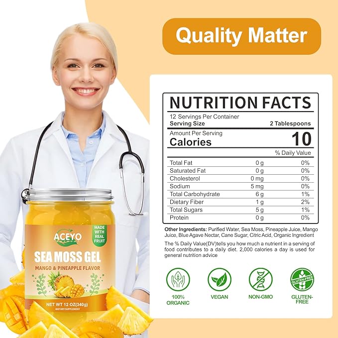 - 🥭🍍【Made It With Safety Tested】 ACEYO Mango Pineapple Sea Moss Gel Are Made With Locally And Globally Sourced Ingredients And Are Produced In An Allergen-Free, GMP Certified Facility To Ensure Our Products Have a Great Reputation And Meet High Quality Standard