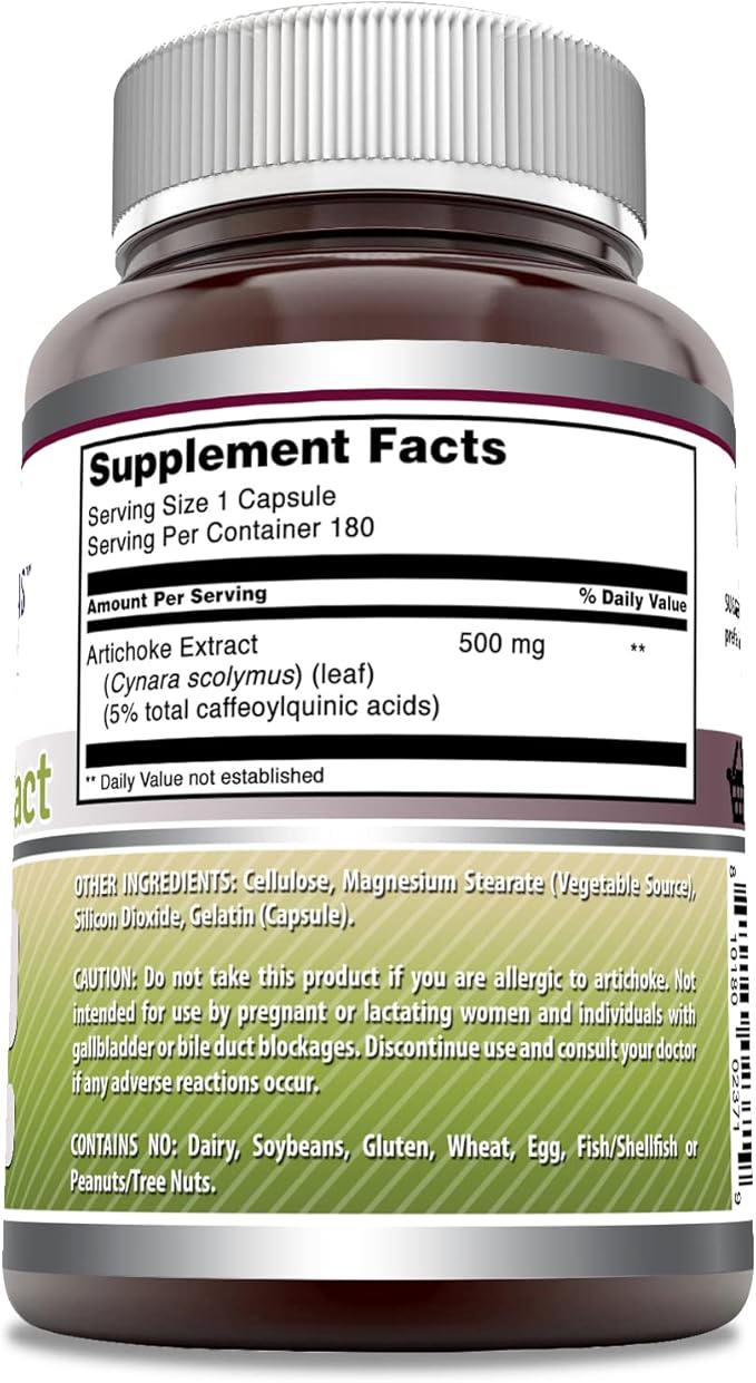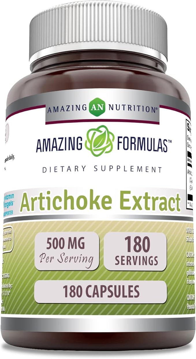 Amazing Formulas Artichoke Extract Supplement | Cynara Scolymus Leaf Capsules| 500 Mg | Capsules | Non-GMO | Gluten Free | Made in USA (1 Pack, 180 Count)