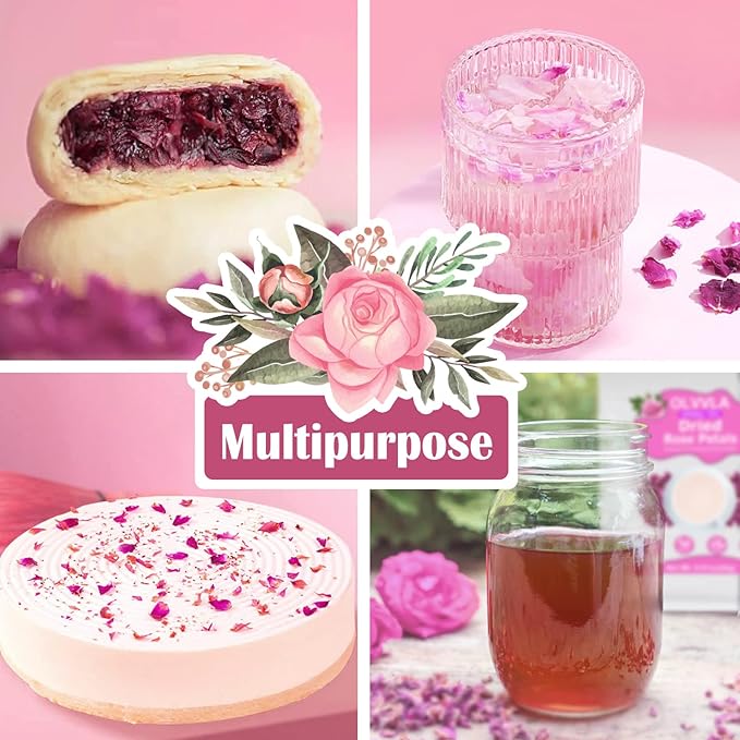 Olvvla - Dried Rose Petals - 0.91oz/26g - Premium Food Grade Dried Roses Edible Flowers - Perfect for Edible Rose Petal Tea, Decorations, Baking, Making Rose Water