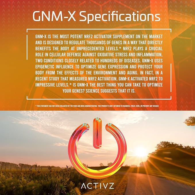 ACTIVZ GNM-X - Nrf2 Activator for Genetic Cellular Defense and Enhanced Well-Being - Supports Longevity and Epigenetic Health - 30 Capsules
