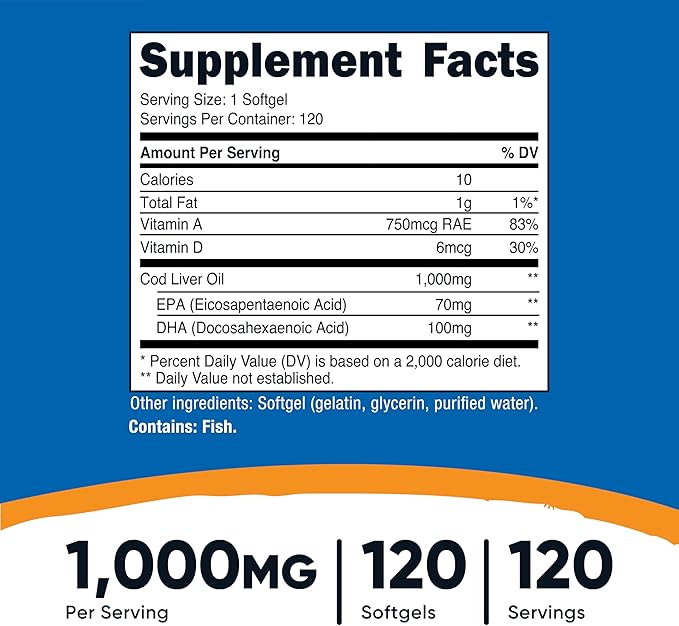 - Nutricost Cod Liver Fish Oil Has 1000 Miligrams Cod Liver Oil Per Softgel