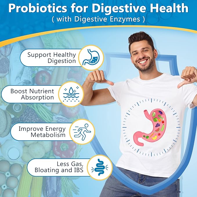 - Complete Digestive Health: Digestive enzymes help break down food to turn into energy, boost nutrient absorption, and relieve gas & bloating. Probiotics help replenish the gut flora aid in digestion balance, reduce constipation & diarrhea. Prebiotic fibers produce short-chain fatty acids and promote probiotic growth. Taking digestive enzymes with probiotics and prebiotics together make your digestion in top shape.