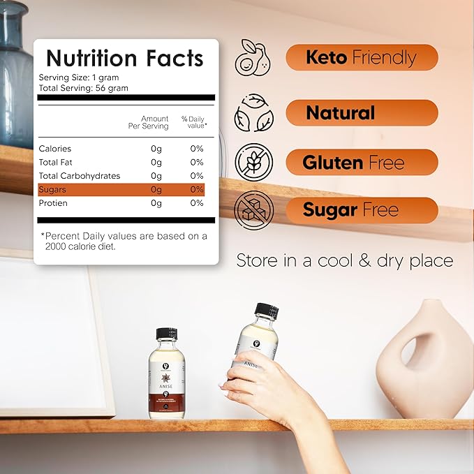 - Revolutionize Cooking with Anise: Elevate your marinades and dressings with our anise flavoring extract. It adds a luxurious, licorice-like dimension to both sweet and savory dishes, transforming them with its rich aroma.