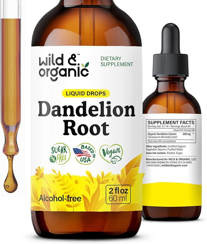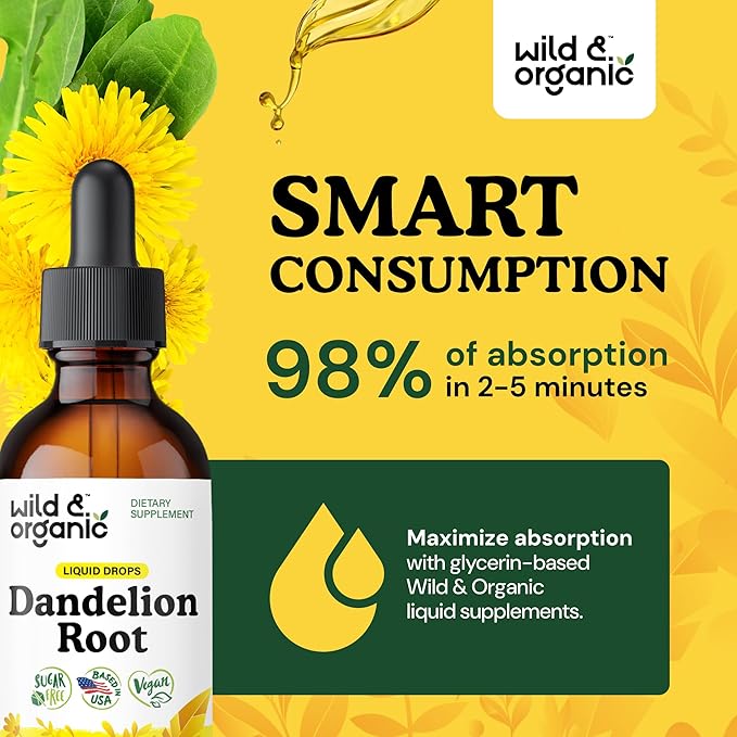 - Liver Support: Each serving of Wild & Organic dandelion root tincture contains 650 mg of dandelion root extract for liver support.