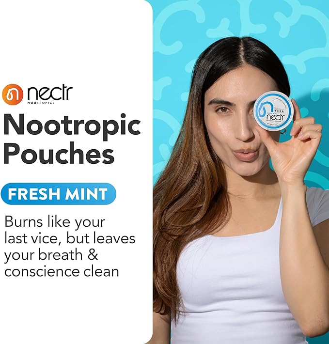 Nectr Energy Nootropic Pouches – Fresh Mint Flavored, Caffeine Pouches with Cognizin® Citicoline. Nicotine-Free Sugar-Free Brain Treats. Smooth, Sustained Focus & Energy Supplement - 5 Pucks of 16pcs