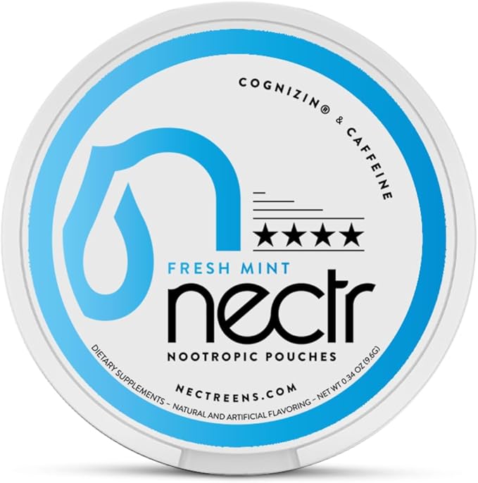 Nectr Energy Nootropic Pouches – Fresh Mint Flavored, Caffeine Pouches with Cognizin® Citicoline. Nicotine-Free Sugar-Free Brain Treats. Smooth, Sustained Focus & Energy Supplement - 1 Puck of 16pcs