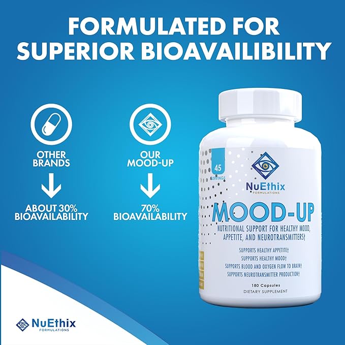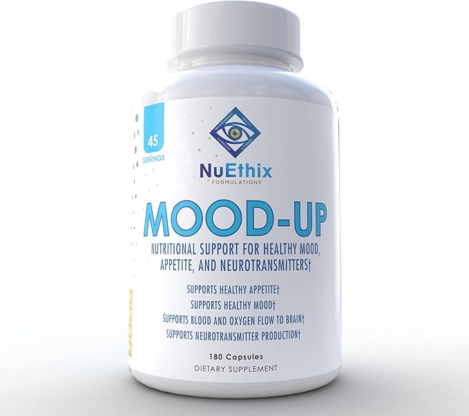 NuEthix Formulations Mood-Up - Stress Relief, Mood & Sleep Supplement - 5-HTP, Rhodiola Rosea + More - Natural Energy & Hormone Support - Non-GMO - 180 Capsules