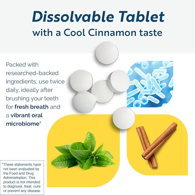 - Post Brushing Oral Hygiene Boost - Use twice daily in addition to dental care, ideally after brushing your teeth. Dissolve 1 tablet in mouth and swallow. Naturally refreshing peppermint vanilla flavor.