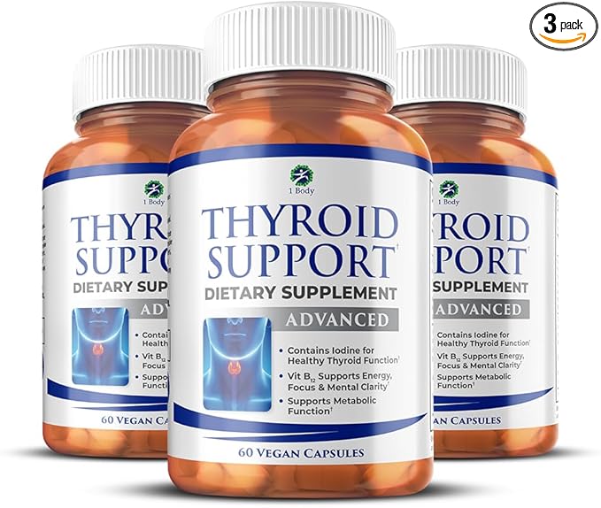 1 Body Thyroid Support Supplement, 90-Day Supply, 3 Pack with B12, Iodine, Zinc, Selenium, Ashwagandha, Non-GMO Vegetarian Formula