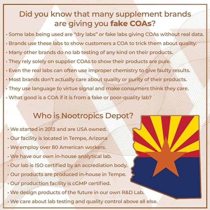 - LAB TESTED AND VERIFIED - All Nootropics Depot products are thoroughly lab tested to ensure our customers are receiving only the highest quality ingredients at the optimal strength, potency and purity. We take pride in the amount of research put into every product by sourcing only the highest quality and innovative ingredients.