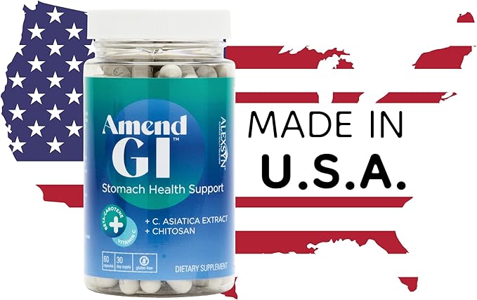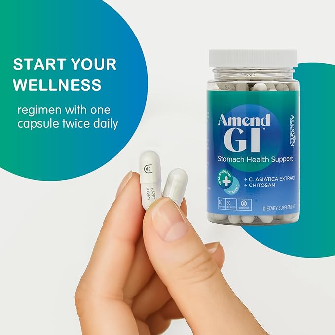 Amend GI All-Natural Stomach Health Support 60 Capsules - Nutraceutical for Stress-Induced Ulcer Symptoms - Supports Healing and Digestive Health with Asiatica Extract & CM Chitosan