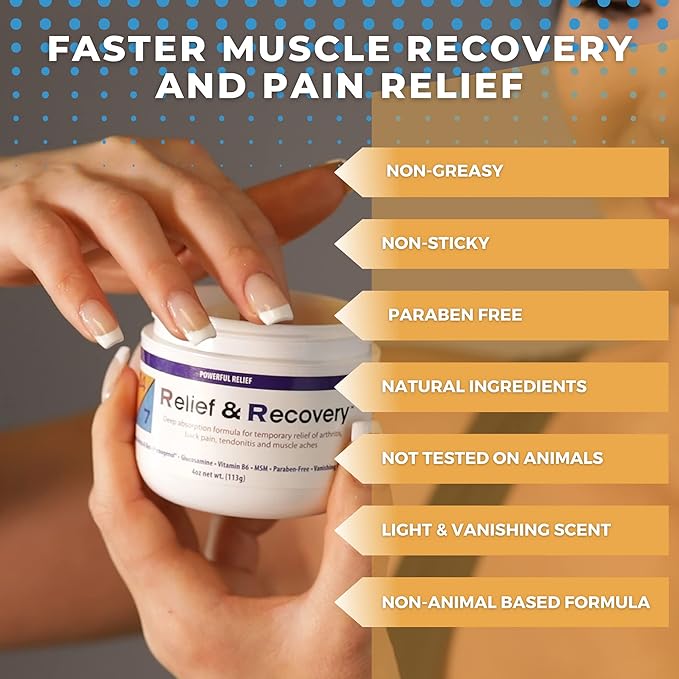 - [EXPERIENCE TARGETED PAIN RELIEF FROM JOINT AND MUSCLE SORENESS] If you want to relieve discomfort at the source of your pain, then you will love the deep absorption and powerful relief from our 24/7 Relief & Recovery Pain Cream! It is the best topical analgesic on the market today! It is made with an ingredient combination not seen until now. It includes: Menthol, Arnica, Pycnogenol, Glucosamine, MSM, Boswellia, Vitamin B6, Ilex, and Tea Tree Oil. Fast acting with a light vanishing scent.