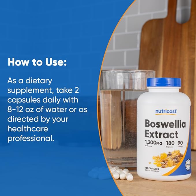 Nutricost Boswellia Extract Capsules (1,200 MG) (180 CAPS) - Gluten Free, Non-GMO, Vegan, 90 Servings