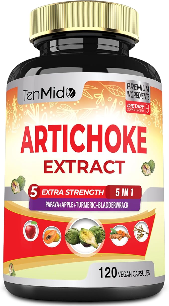 - ❤️Advanced Formula: Tenmido Artichoke Extract Capsules combination of the highest quality Artichoke powder with 4 extra powerful herbal problematic ingredients: Papaya, Apple Pectin, Turmeric Curcumin, Bladderwrack. With the special optimized formula, our product has been shown to be one of the most advantageous herbs, highest absorption and bioavailability for your overall health.
