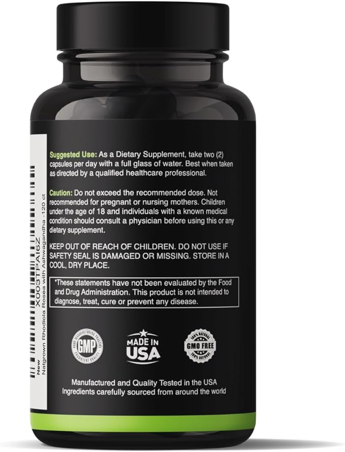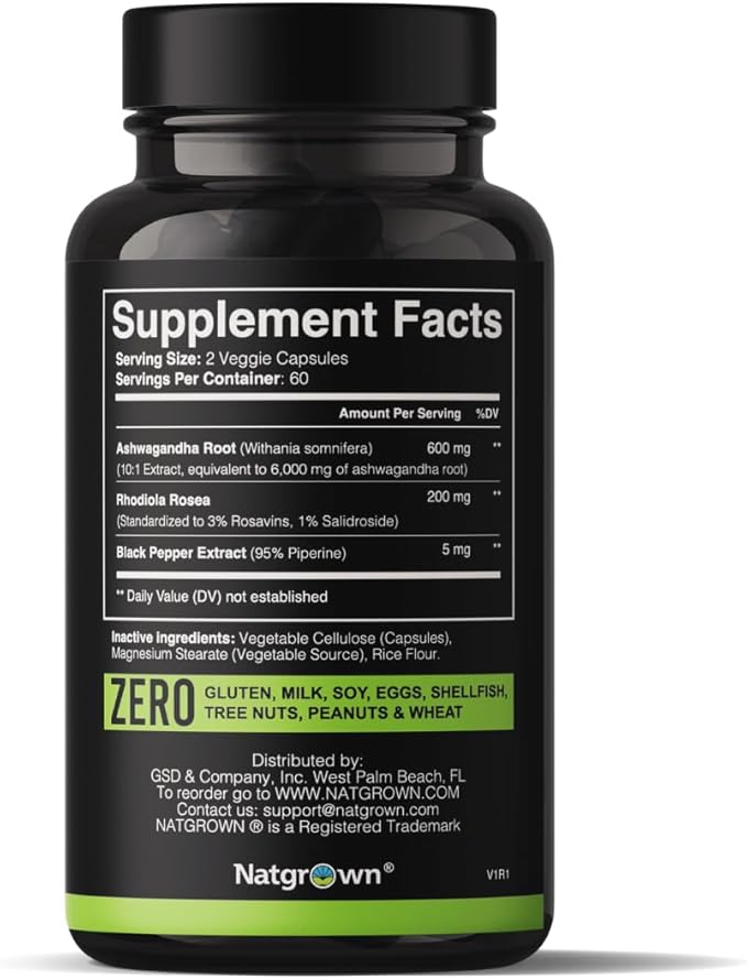 - Made In The USA - Made with Ashwagandha Root (10:1 Extract) and Rhodiola Rosea (Standardized to 3% Rosavins and 1% Salidroside). It also contains organic black pepper for enhanced absorption. We use only the highest-quality ingredients. Our products do not contain gluten, milk, soy, tree nuts, peanuts, or wheat.