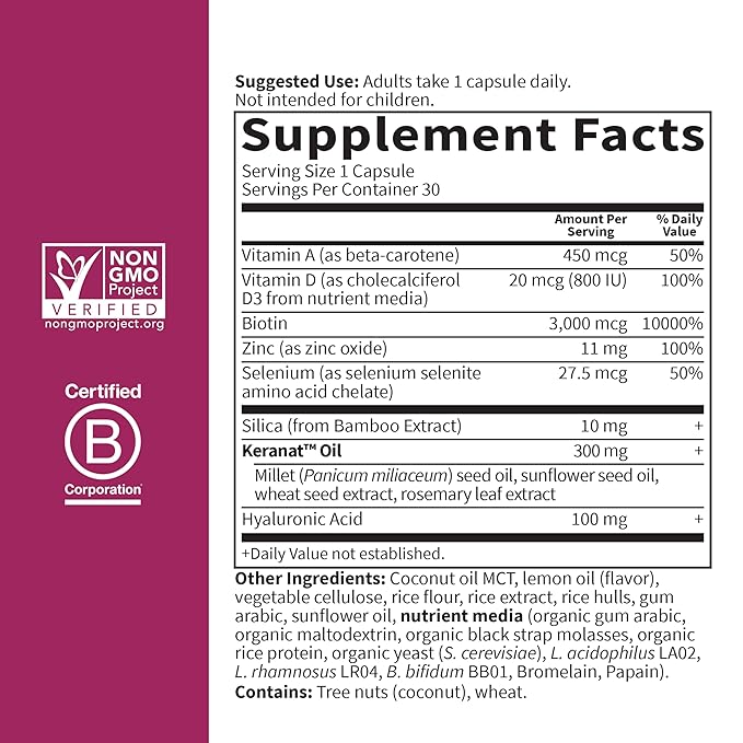 - COMPREHENSIVE HAIR NOURISHMENT FORM THE INSIDE OUT: Combining clinically studied Keranat, Hyaluronic Acid, Biotin, and Silica, these plant-based capsules support hair growth, scalp health, and shine for visibly healthier hair*