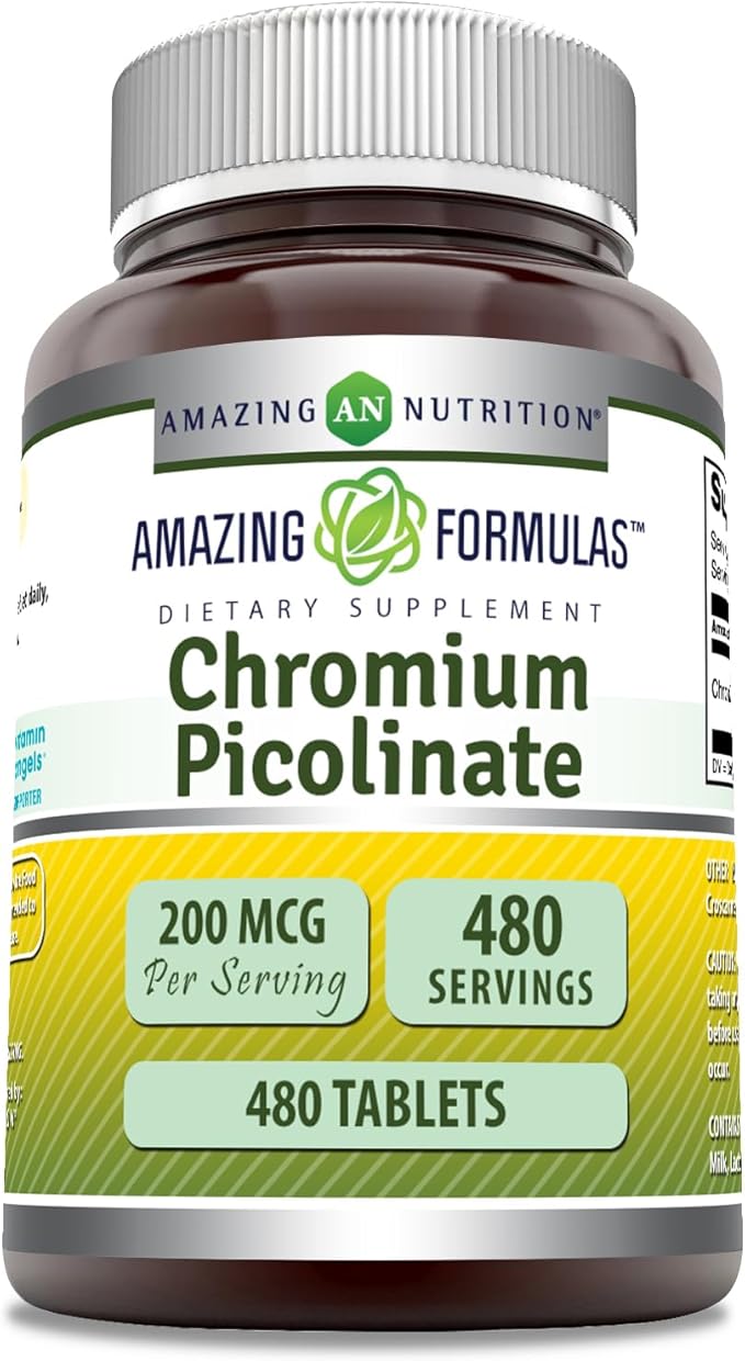 Amazing Formulas Chromium Picolinate Supplement | 200 Mcg Per Serving | Tablets | Non-GMO | Gluten Free | Made in USA (480 Count)