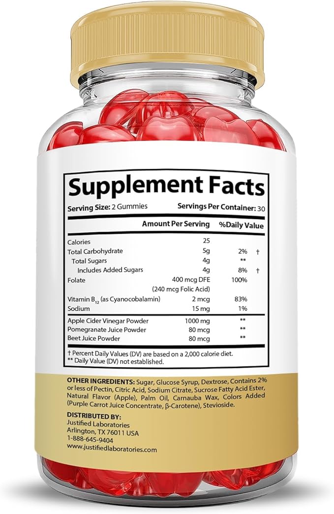 - Added Ingredients: Our proprietary blend of apple cider vinegar gummies contain beet root, vitamin b12 and folate