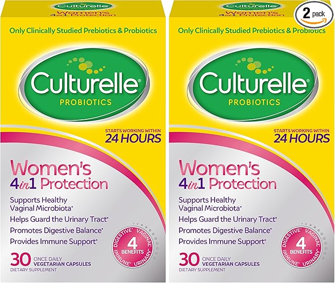 Culturelle 4-in-1 Probiotics for Women, Daily Probiotic & Prebiotic Supplement to Support Vaginal Health, Digestive Health, Immune Health, Occasional Diarrhea, Gas & Bloating Relief, Non-GMO, 30 Count